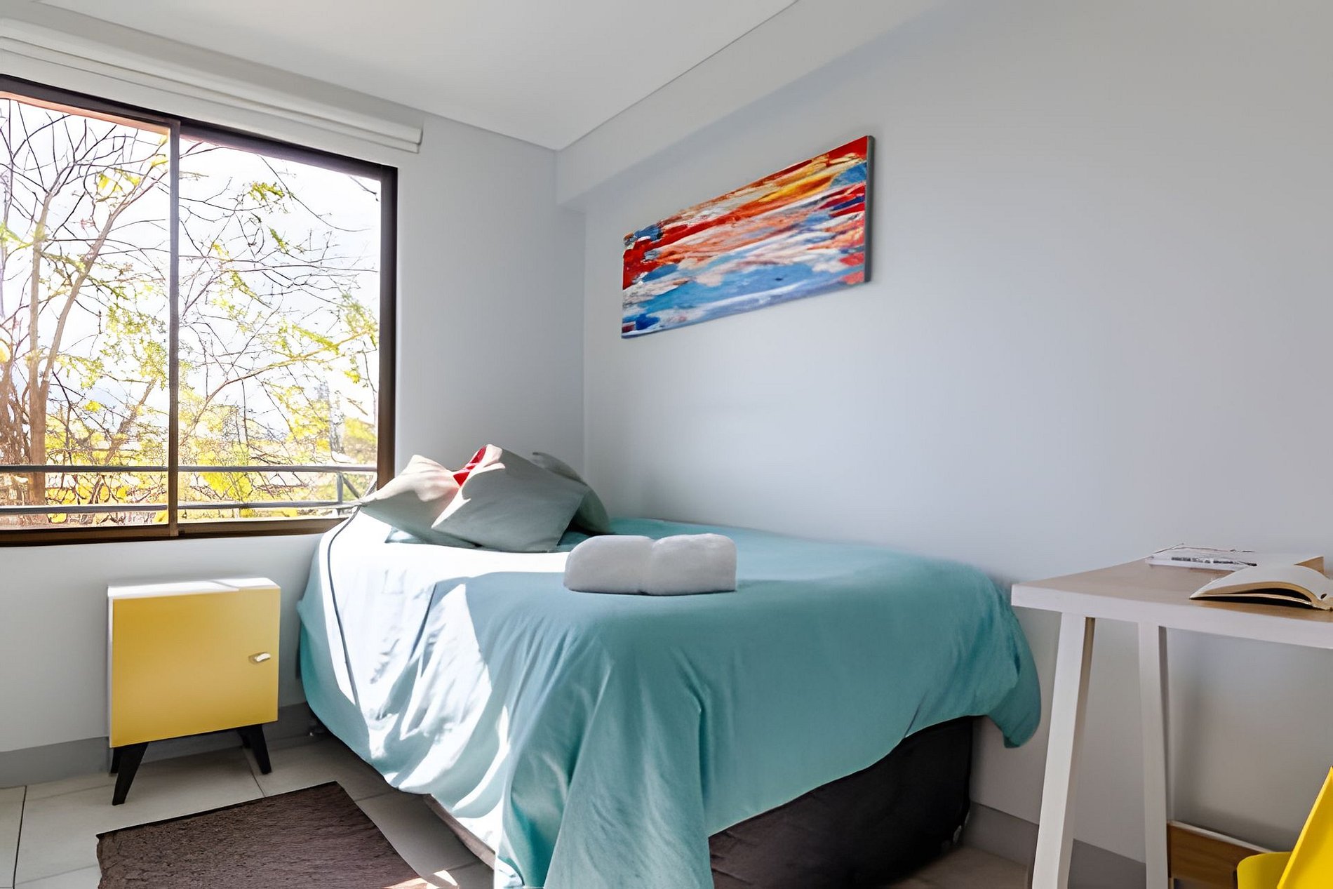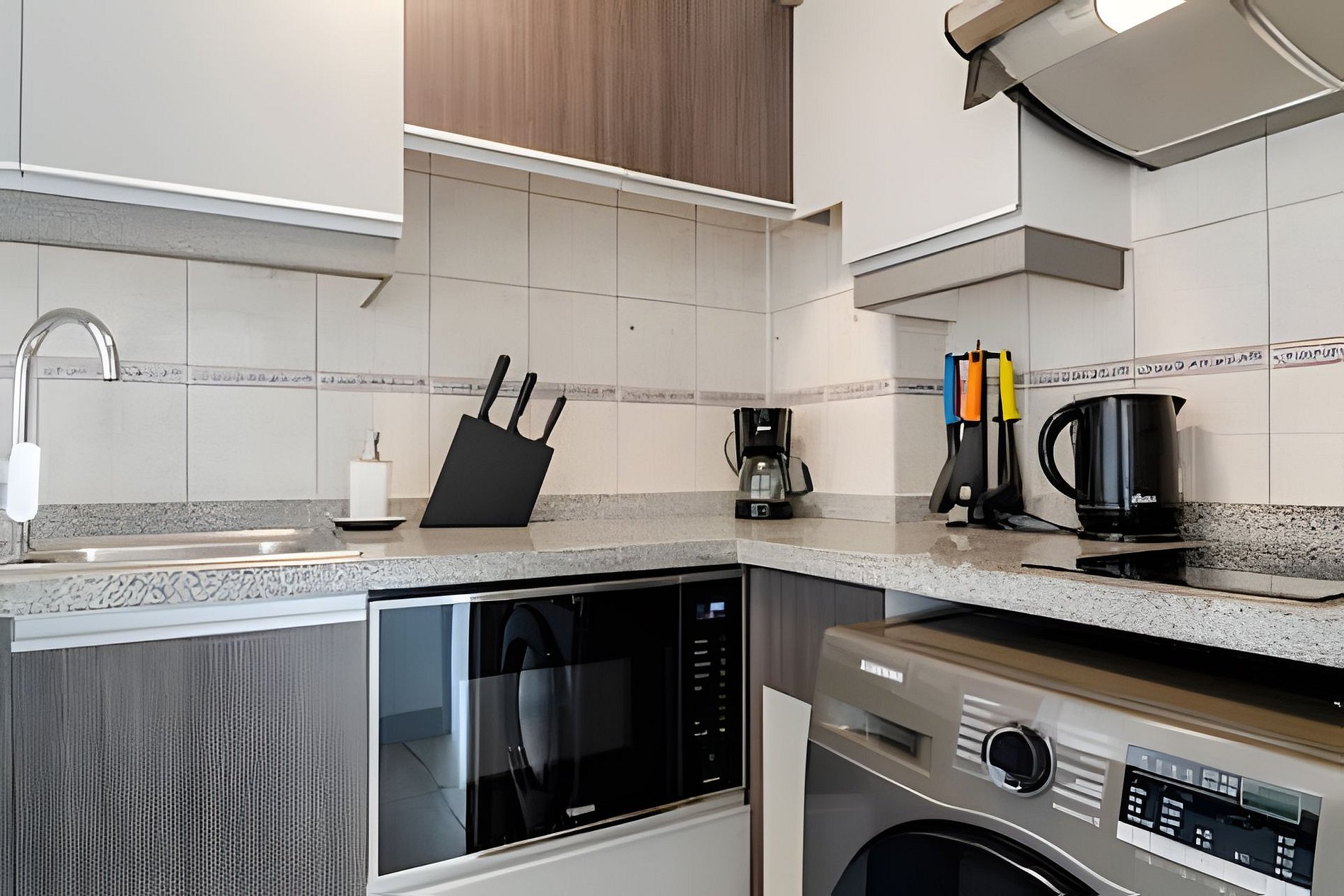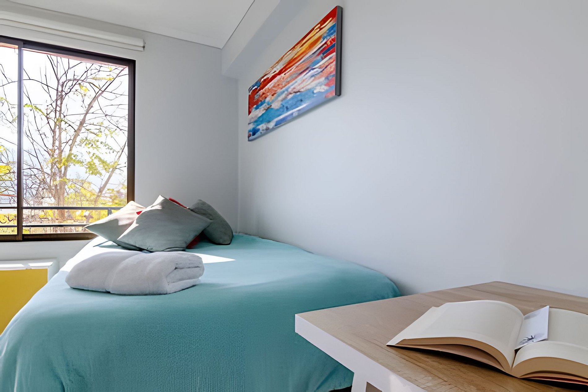 Espacio moderno, luminoso y funcional, diseñado para ofrecer confort y practicidad. Cuenta con WiFi rápido, Smart TV con acceso a Netflix y calefacción eléctrica segura, sin riesgo de monóxido de carbono. La cocina está completamente equipada con horno, microondas, frigobar, cafetera, hervidor y menaje básico. Incluye lavadora-secadora, ropa de cama y toallas de calidad, para que disfrutes una estadía cómoda y sin preocupaciones. Cada detalle está pensado para que te sientas en casa, con una luz natural que realza el ambiente.