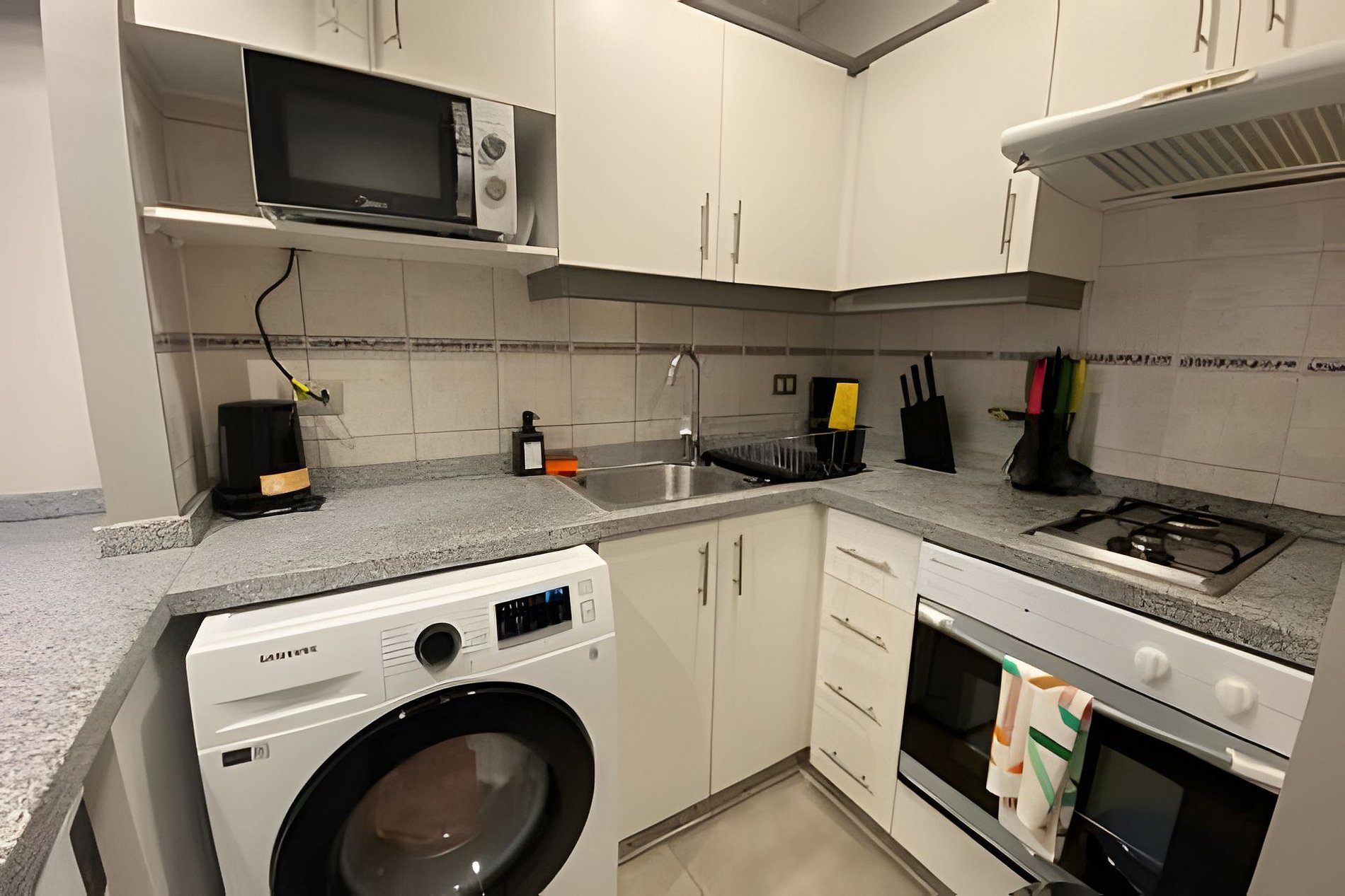 Espacio moderno, fresco y bien equipado para ofrecer comodidad y funcionalidad durante toda tu estadía. Cuenta con WiFi rápido, Smart TV con acceso a Netflix y calefacción eléctrica segura, sin riesgo de monóxido de carbono. La cocina está completamente equipada con horno, microondas, frigobar, cafetera, hervidor y menaje básico. Incluye lavadora-secadora, ropa de cama y toallas para una experiencia cómoda y sin preocupaciones.
