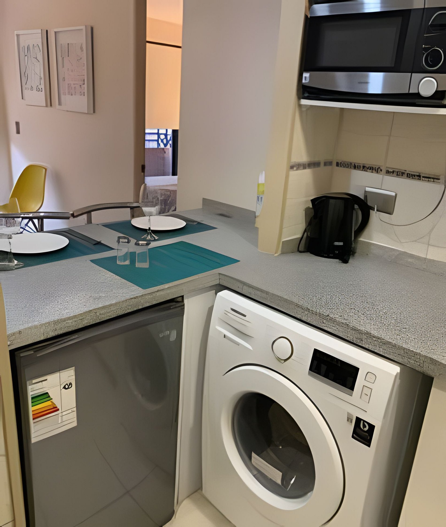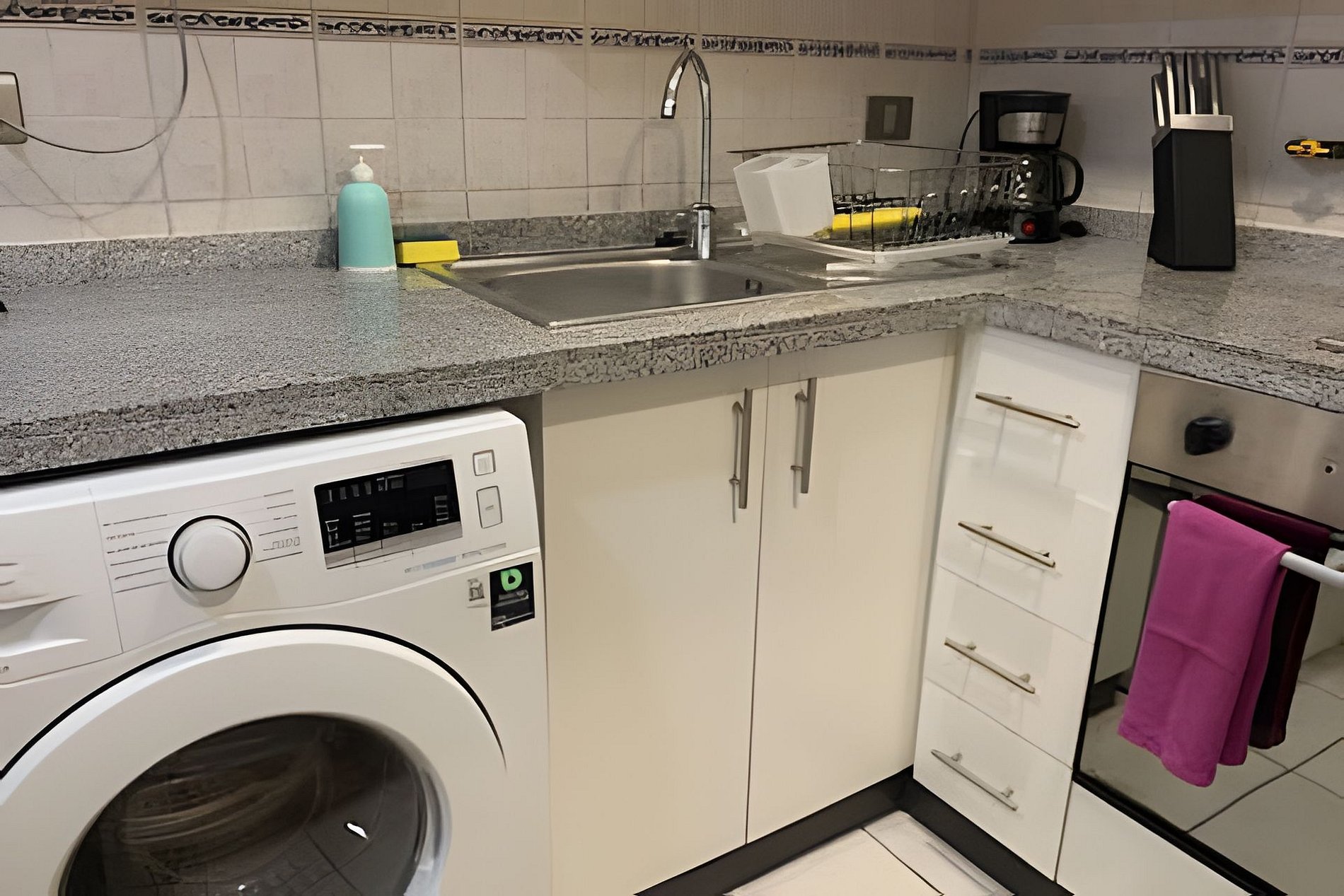 Espacio cómodo, moderno y fresco, equipado con todo lo necesario para una estadía agradable. Cuenta con WiFi, Smart TV con acceso a Netflix y calefacción eléctrica segura, sin riesgo de monóxido de carbono. La cocina está completamente equipada con horno, microondas, frigobar, cafetera, hervidor y menaje básico. También cuenta con lavadora-secadora, ropa de cama y toallas para una estadía cómoda y sin preocupaciones.